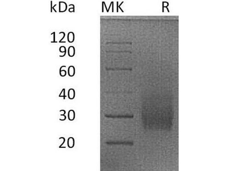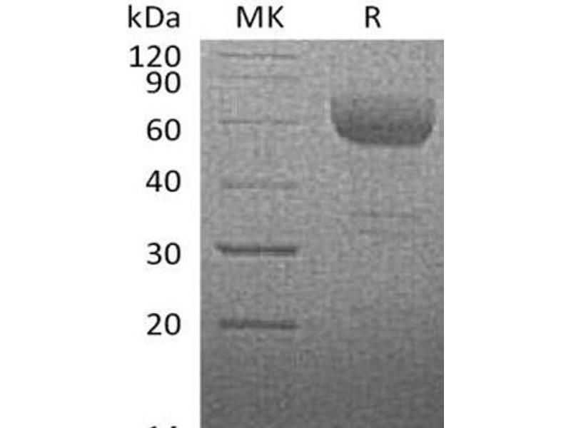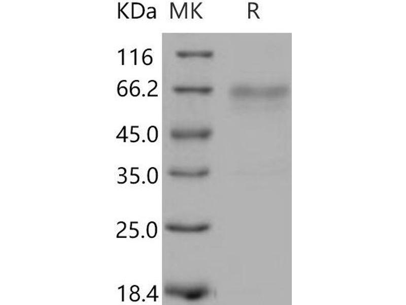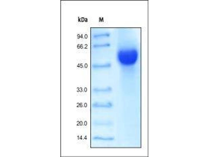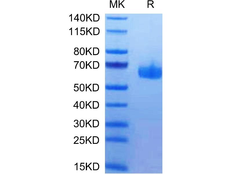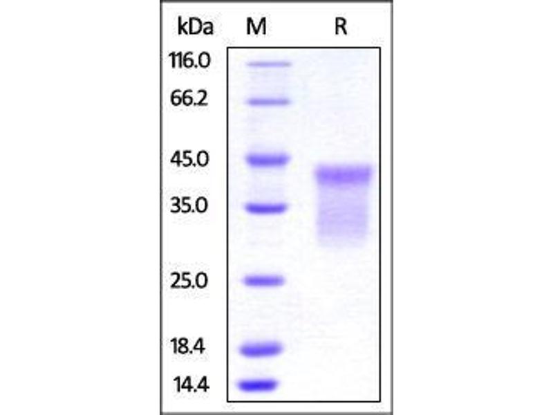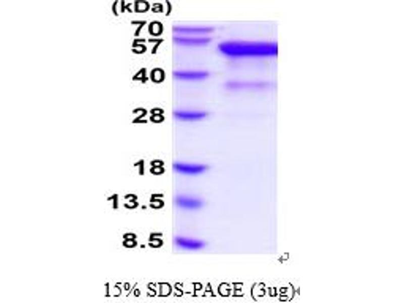 The purity of the protein is greater than 95 % as determined by SDS-PAGE and Coomassie blue staining.