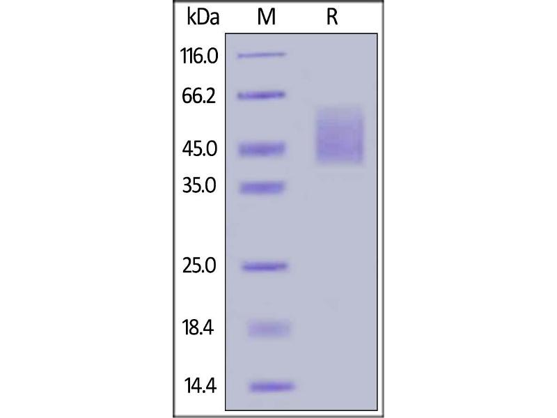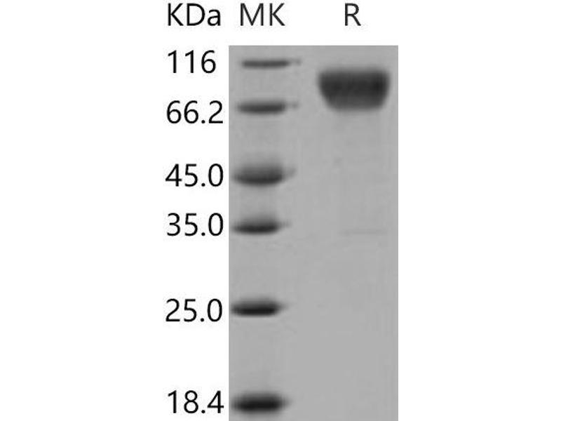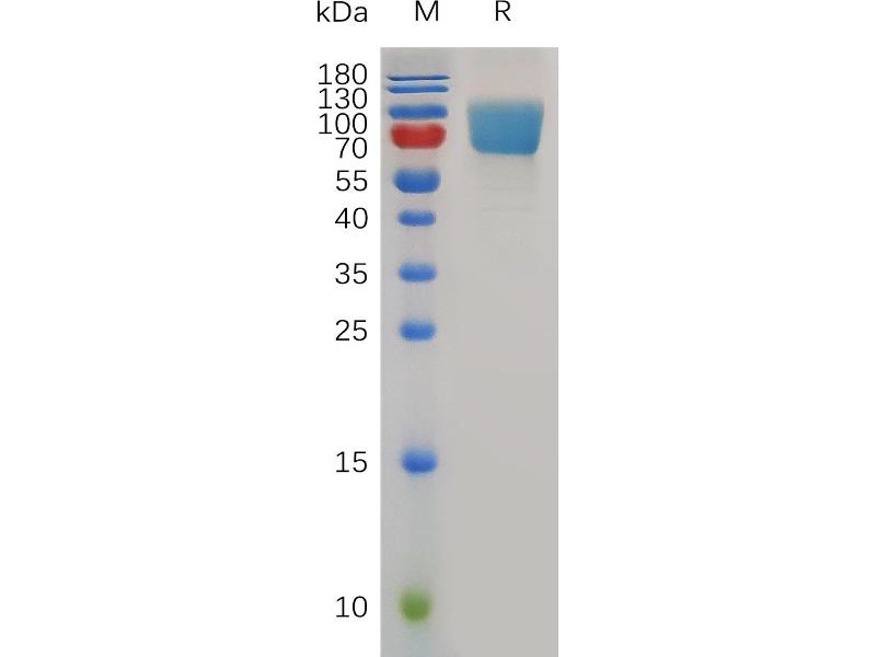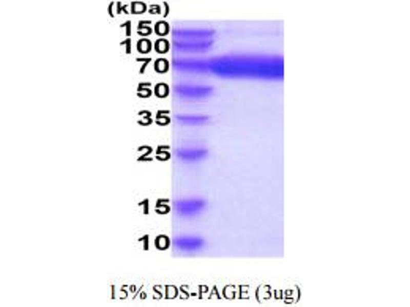 The purity of the protein is greater than 95 % as determined by SDS-PAGE and Coomassie blue staining.