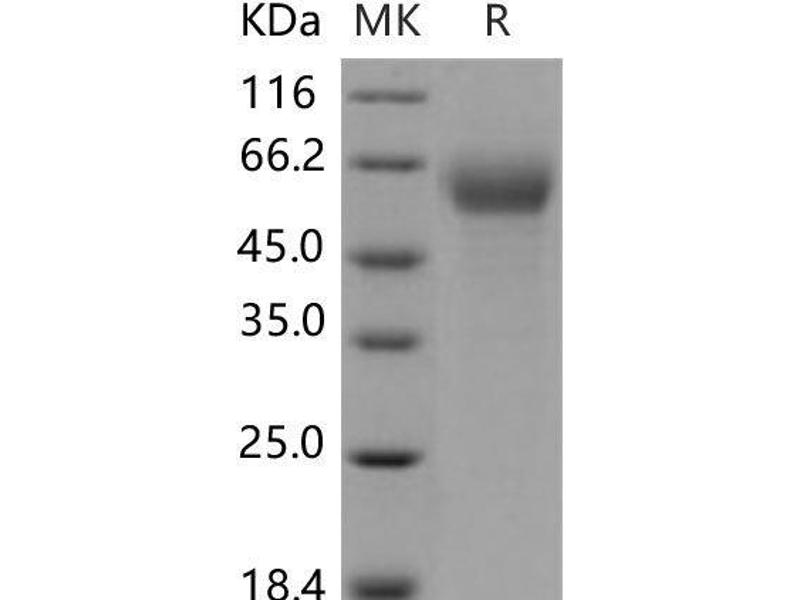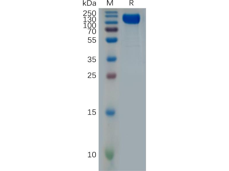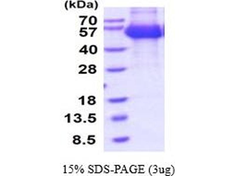 The purity of the protein is greater than 95 % as determined by SDS-PAGE and Coomassie blue staining.