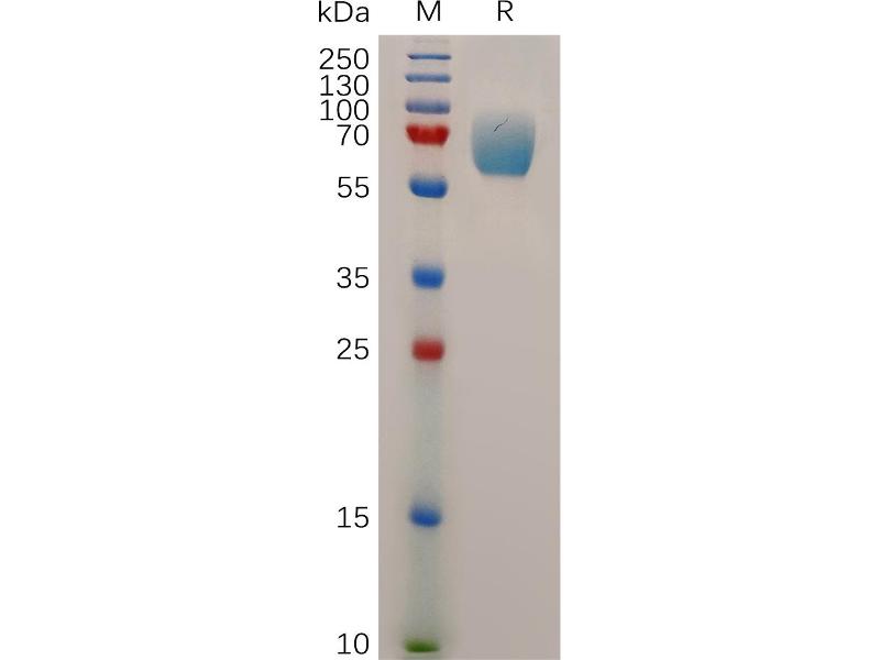 The purity of the protein is greater than 95 % as determined by SDS-PAGE and Coomassie blue staining.