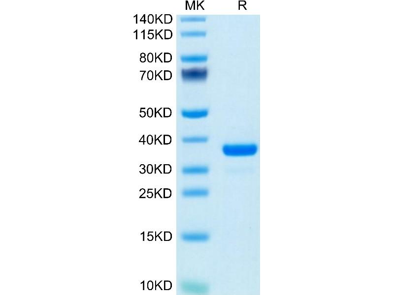 The purity of the protein is greater than 85 % as determined by SDS-PAGE and Coomassie blue staining.