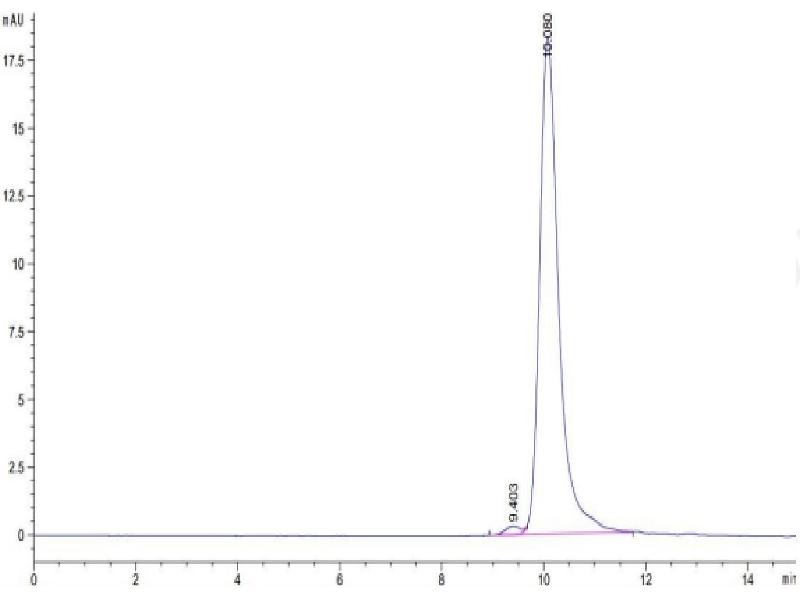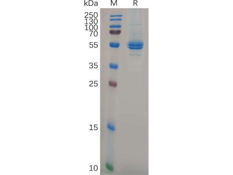 The purity of the protein is greater than 80 % as determined by SDS-PAGE and Coomassie blue staining.