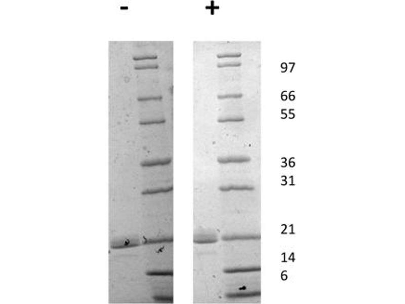The purity of the protein is greater than 80 % as determined by SDS-PAGE and Coomassie blue staining.