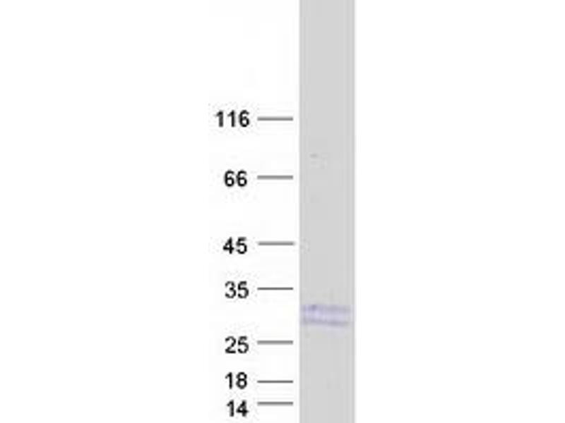 The purity of the protein is greater than 95 % as determined by SDS-PAGE and Coomassie blue staining.