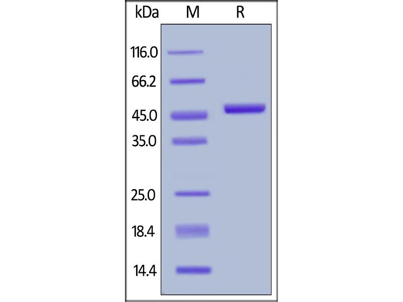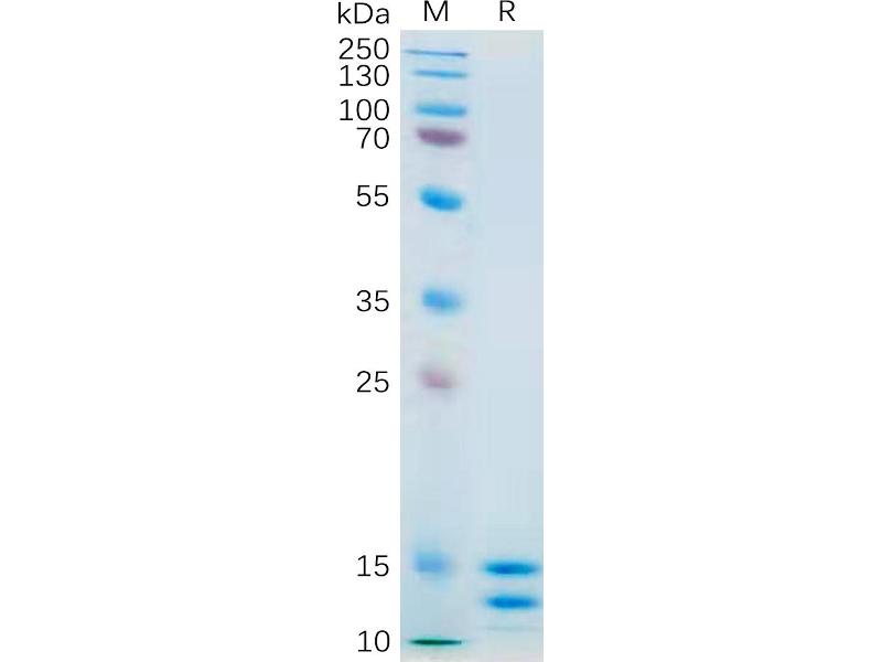 The purity of the protein is greater than 95 % as determined by SDS-PAGE and Coomassie blue staining.