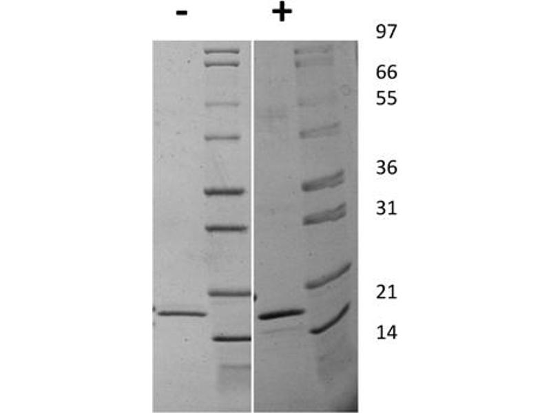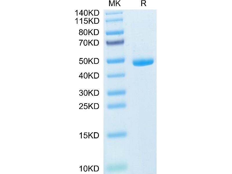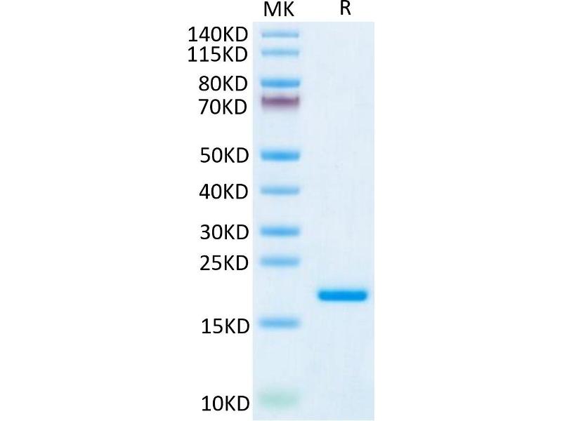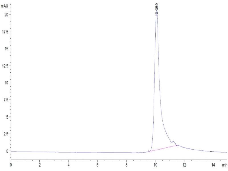The purity of the protein is greater than 95 % as determined by SDS-PAGE and Coomassie blue staining.