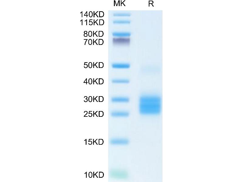 The purity of the protein is greater than 95 % as determined by SDS-PAGE and Coomassie blue staining.