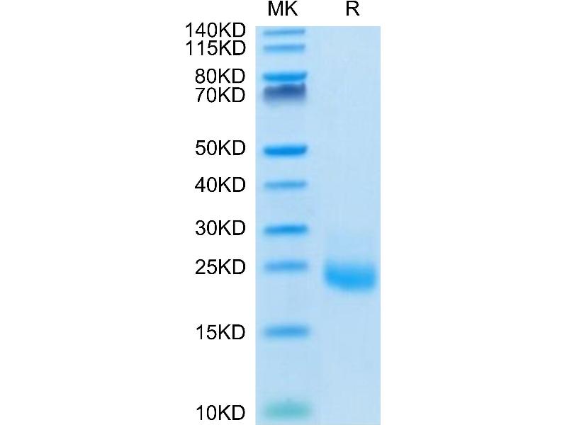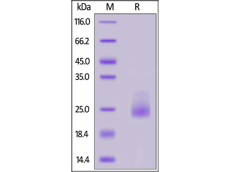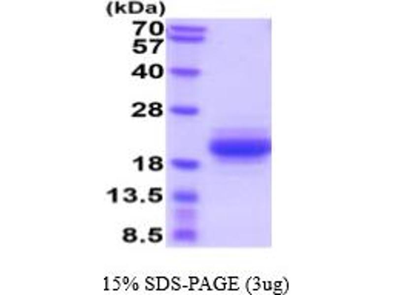 The purity of the protein is greater than 95 % as determined by SDS-PAGE and Coomassie blue staining.