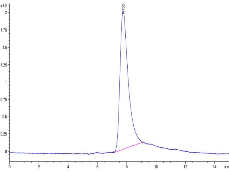 The purity of the protein is greater than 85 % as determined by SDS-PAGE and Coomassie blue staining.