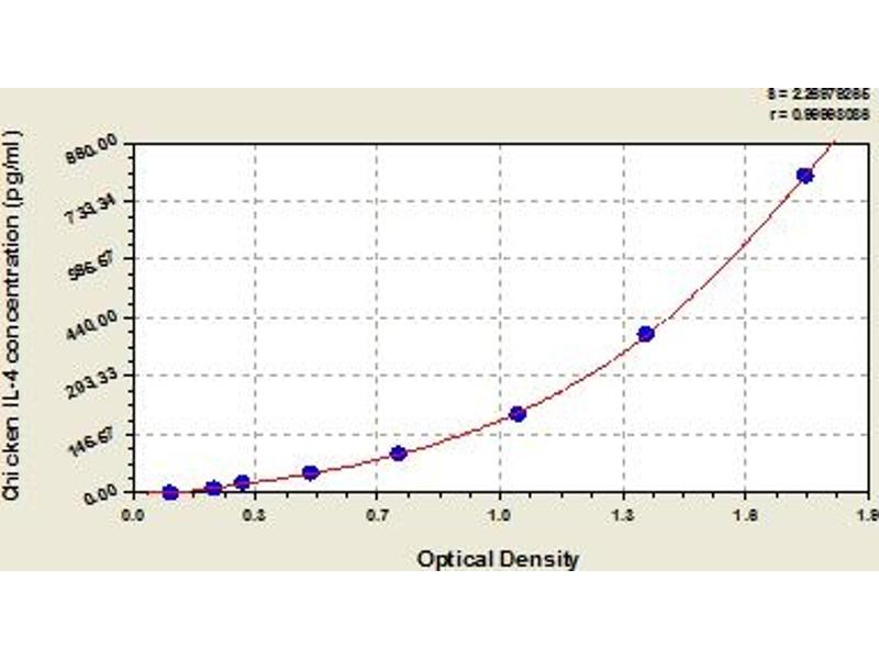 IL4 Reaktivität: Huhn Colorimetric Sandwich ELISA 15.6 pg/mL - 1000 pg/mL Cell Culture Supernatant, Cell Lysate, Plasma, Serum, Tissue Homogenate