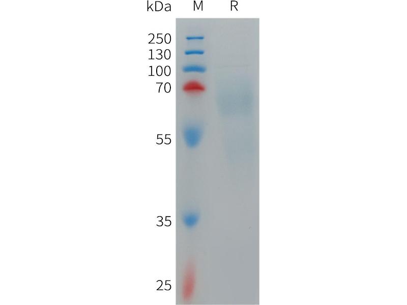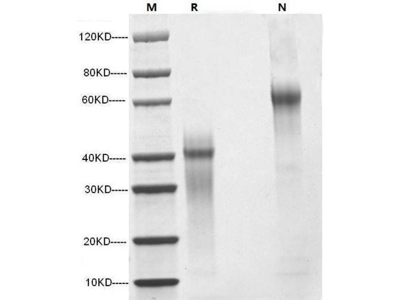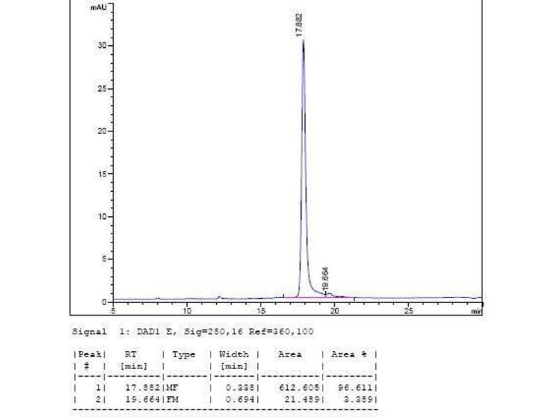 The purity of the protein is greater than 95 % as determined by SDS-PAGE and Coomassie blue staining.