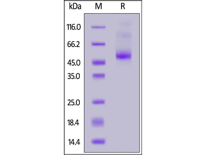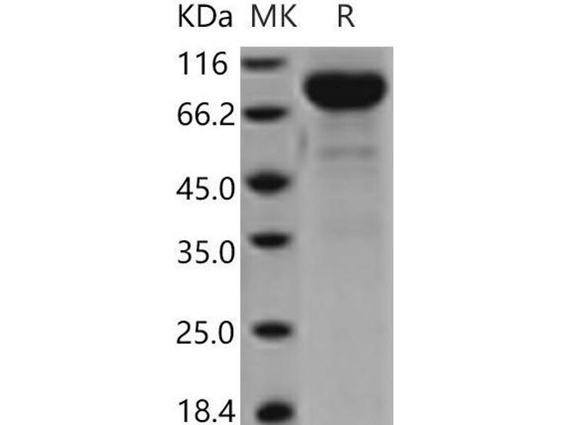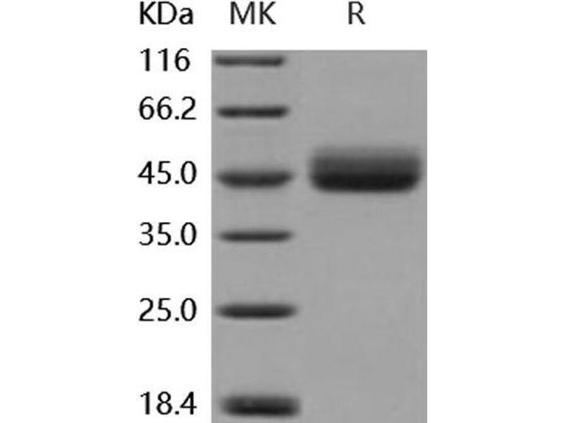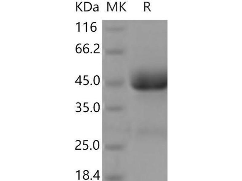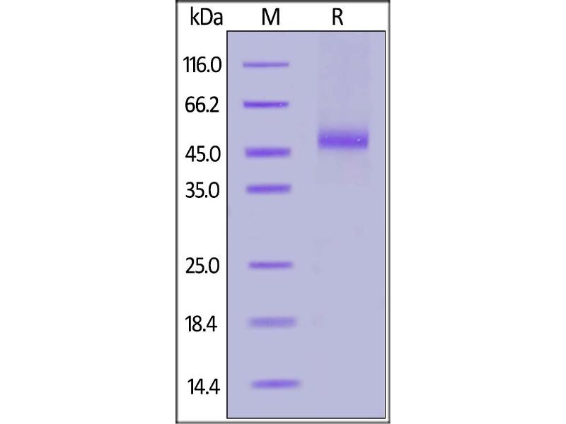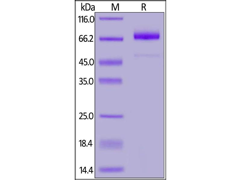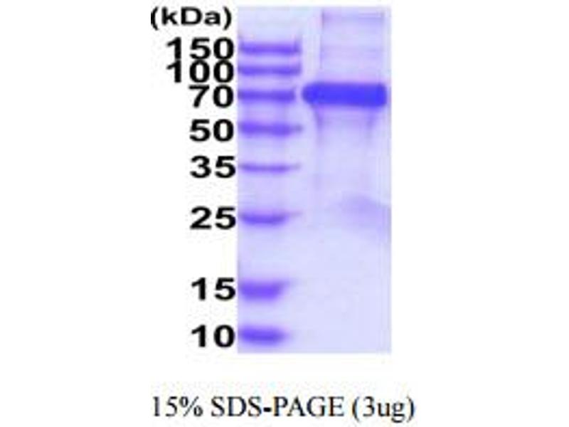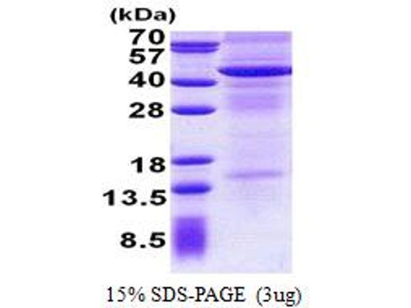 The purity of the protein is greater than 95 % as determined by SDS-PAGE and Coomassie blue staining.