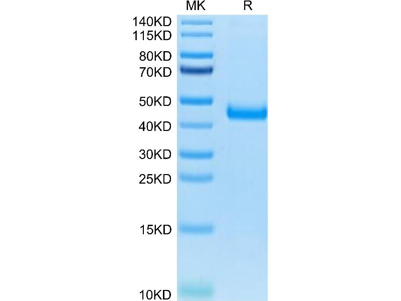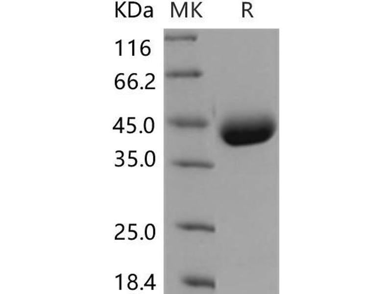 The purity of the protein is greater than 85 % as determined by SDS-PAGE and Coomassie blue staining.