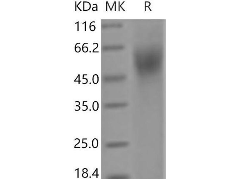 The purity of the protein is greater than 95 % as determined by SDS-PAGE and Coomassie blue staining.