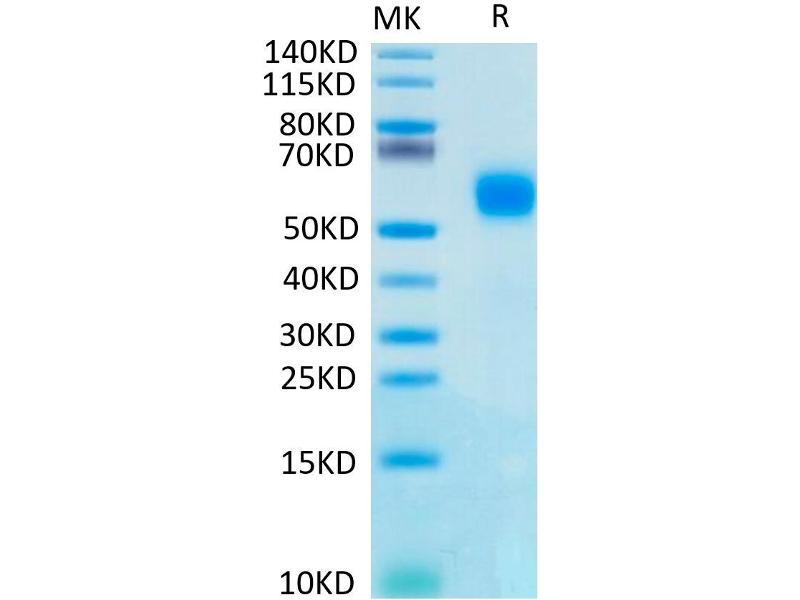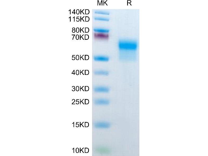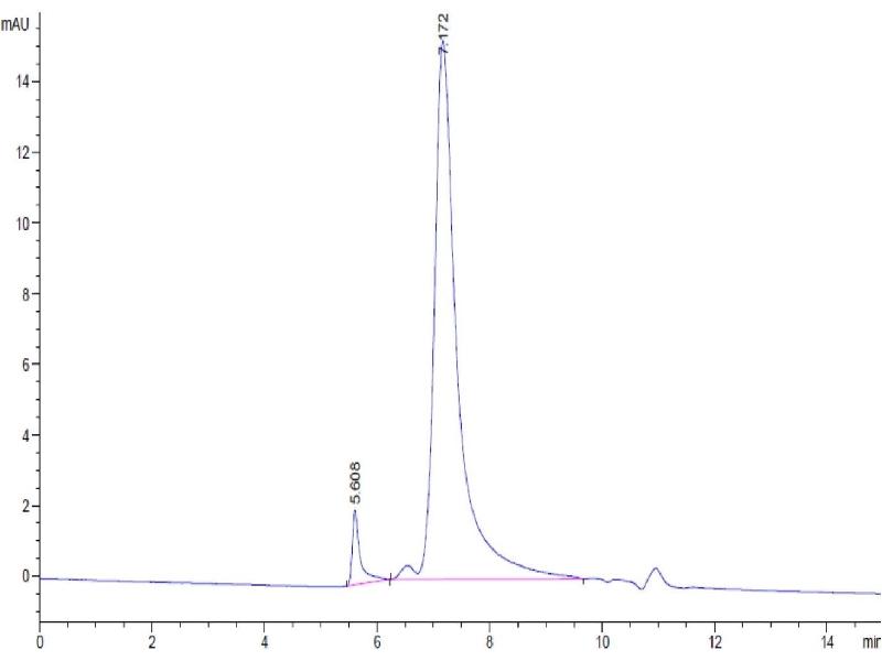 The purity of the protein is greater than 95 % as determined by SDS-PAGE and Coomassie blue staining.