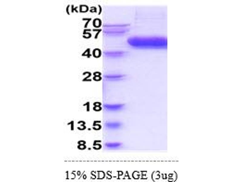 The purity of the protein is greater than 85 % as determined by SDS-PAGE and Coomassie blue staining.