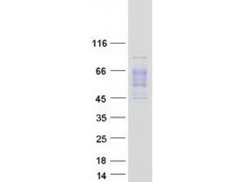 The purity of the protein is greater than 95 % as determined by SDS-PAGE and Coomassie blue staining.