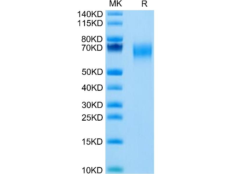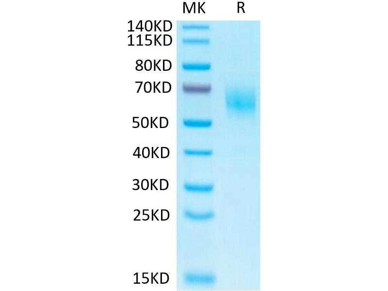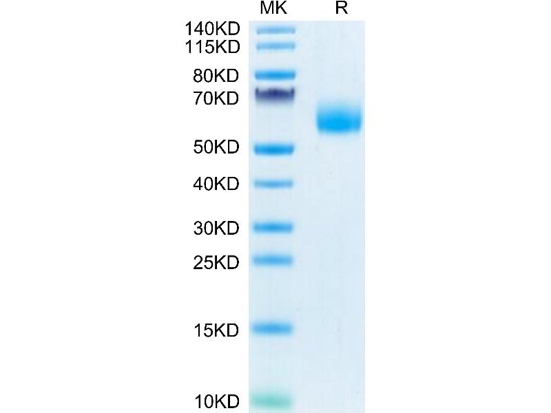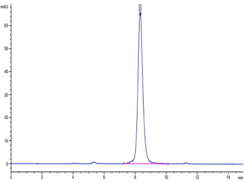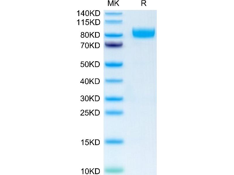 The purity of the protein is greater than 85 % as determined by SDS-PAGE and Coomassie blue staining.