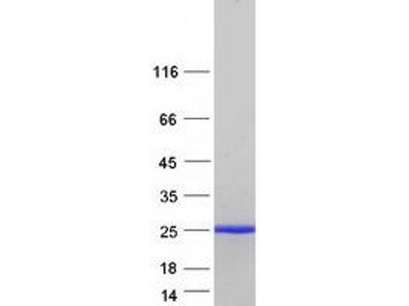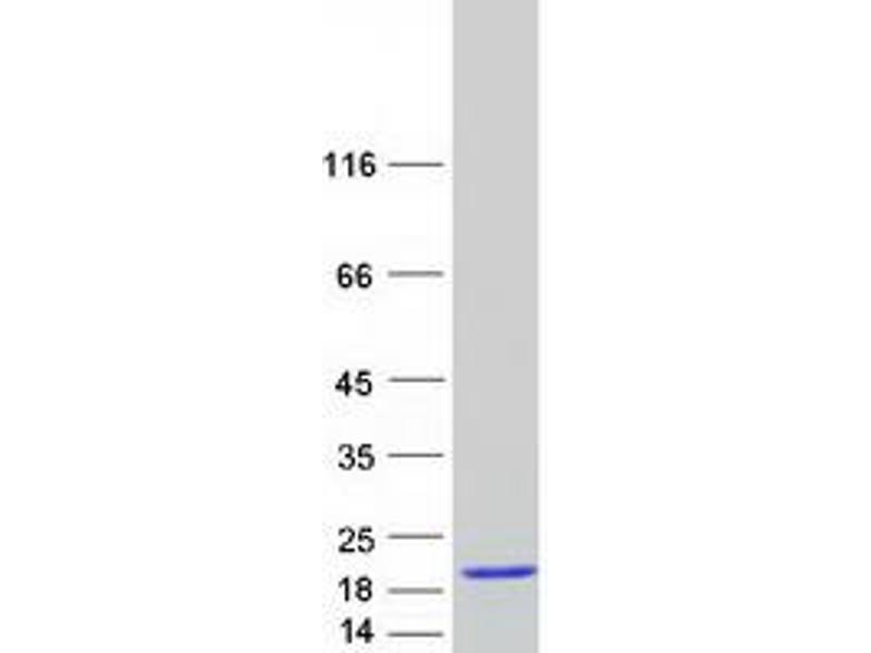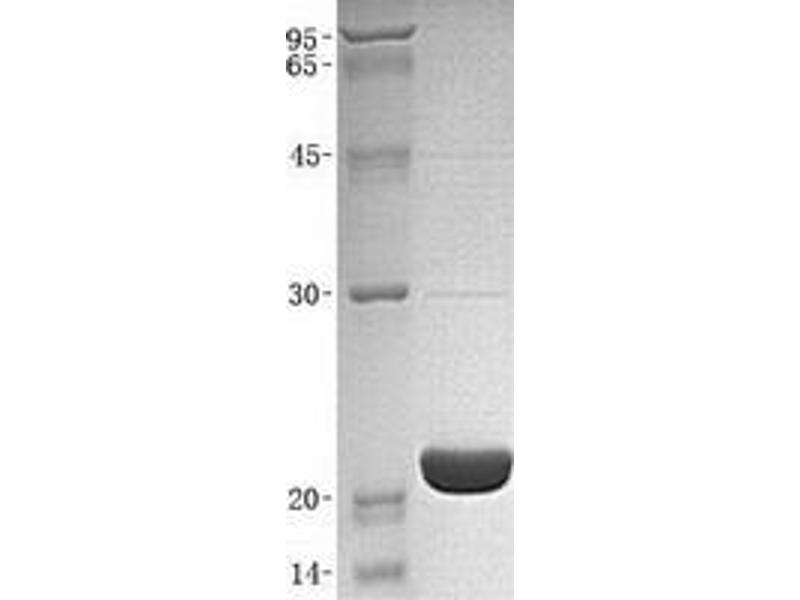 The purity of the protein is greater than 95 % as determined by SDS-PAGE and Coomassie blue staining.