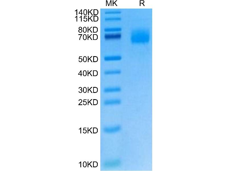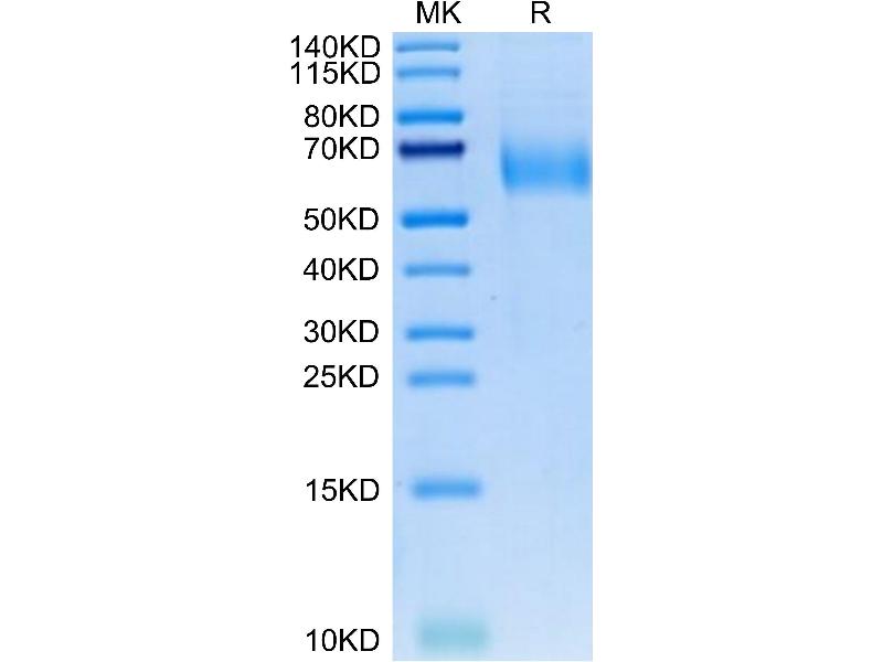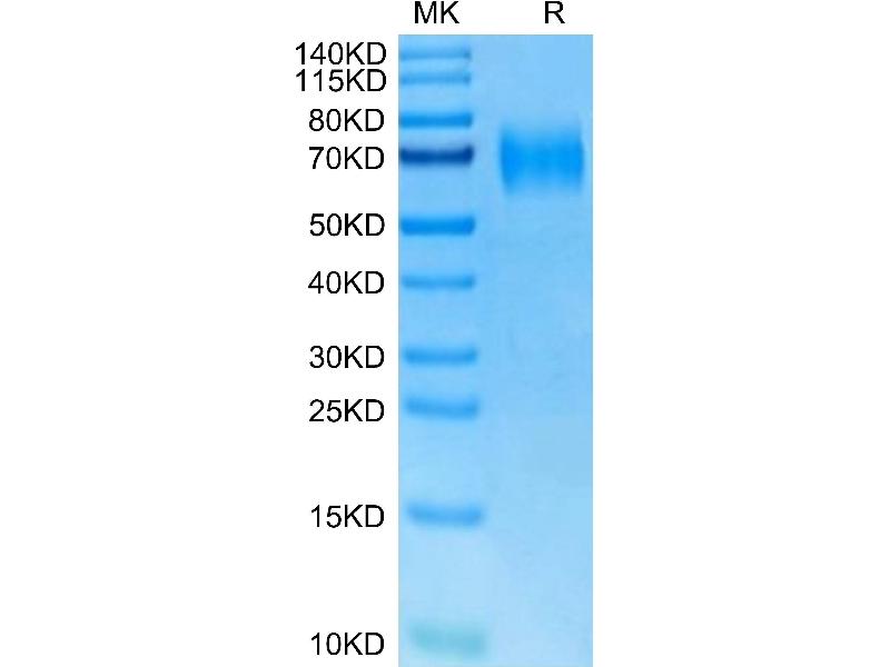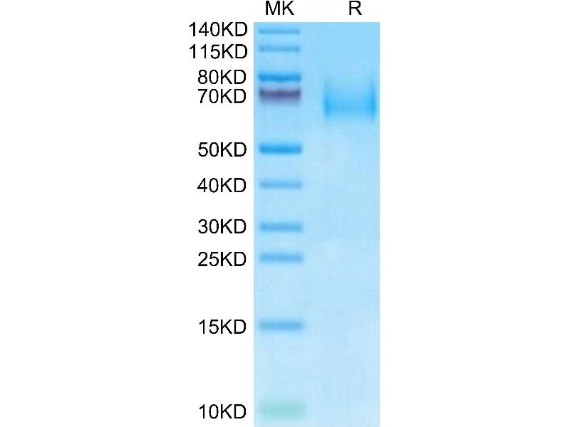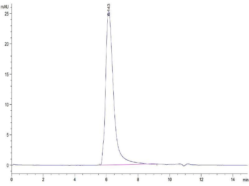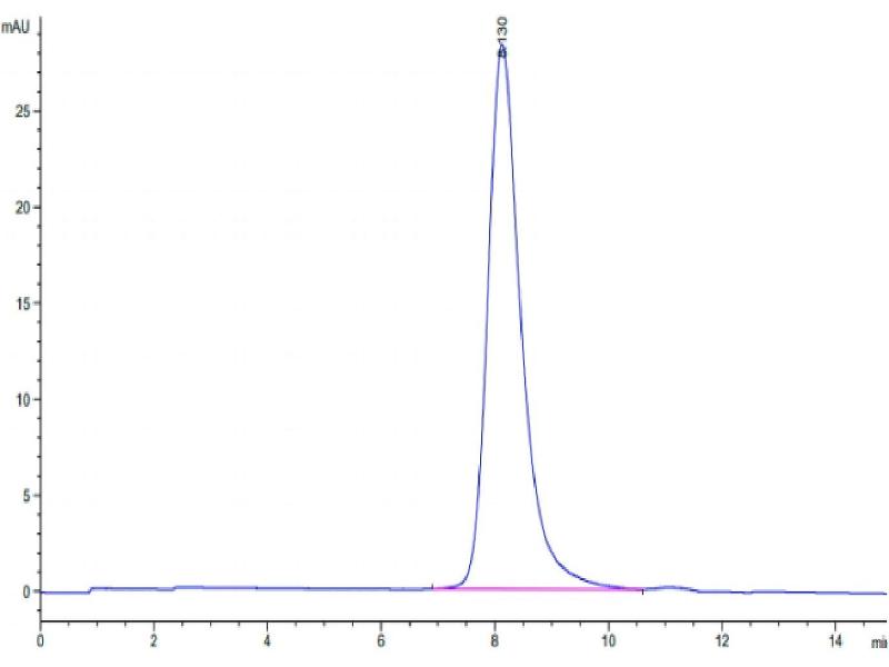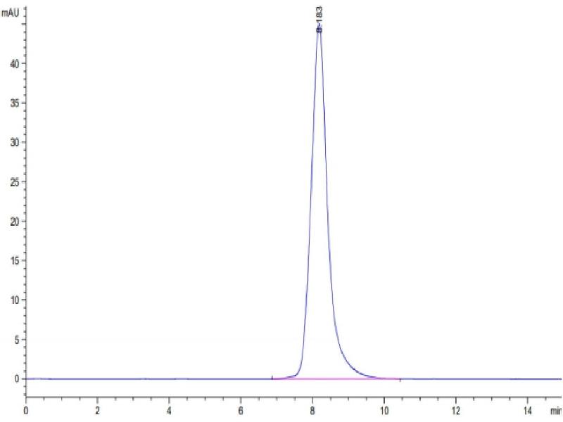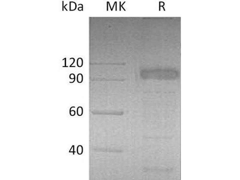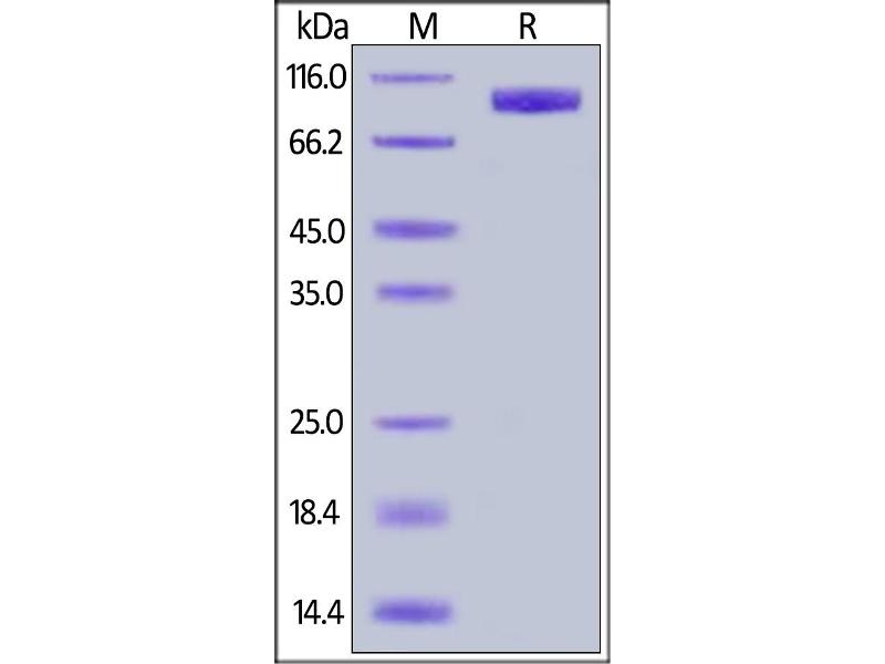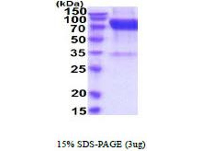 The purity of the protein is greater than 85 % as determined by SDS-PAGE and Coomassie blue staining.