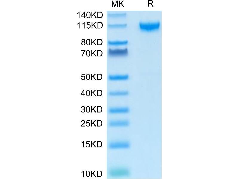 The purity of the protein is greater than 95 % as determined by SDS-PAGE and Coomassie blue staining.