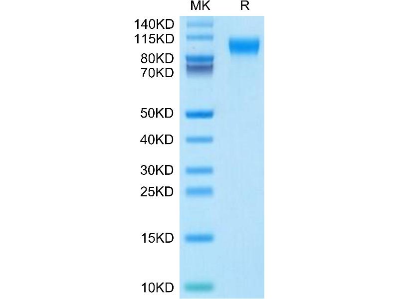 The purity of the protein is greater than 95 % as determined by SDS-PAGE and Coomassie blue staining.