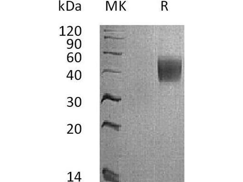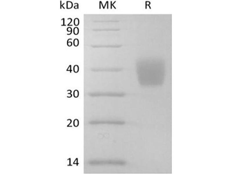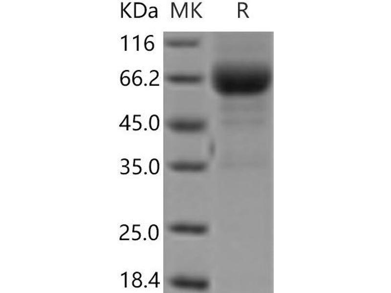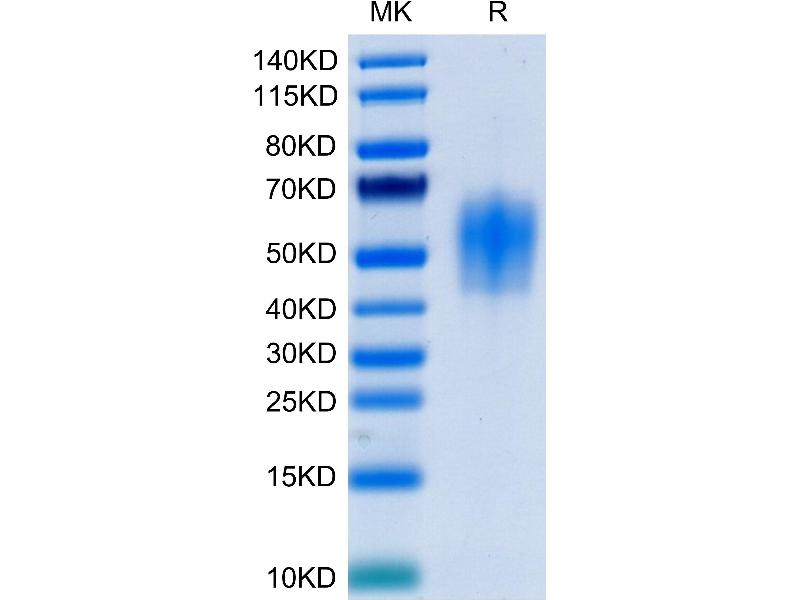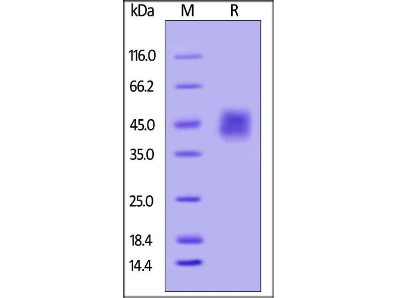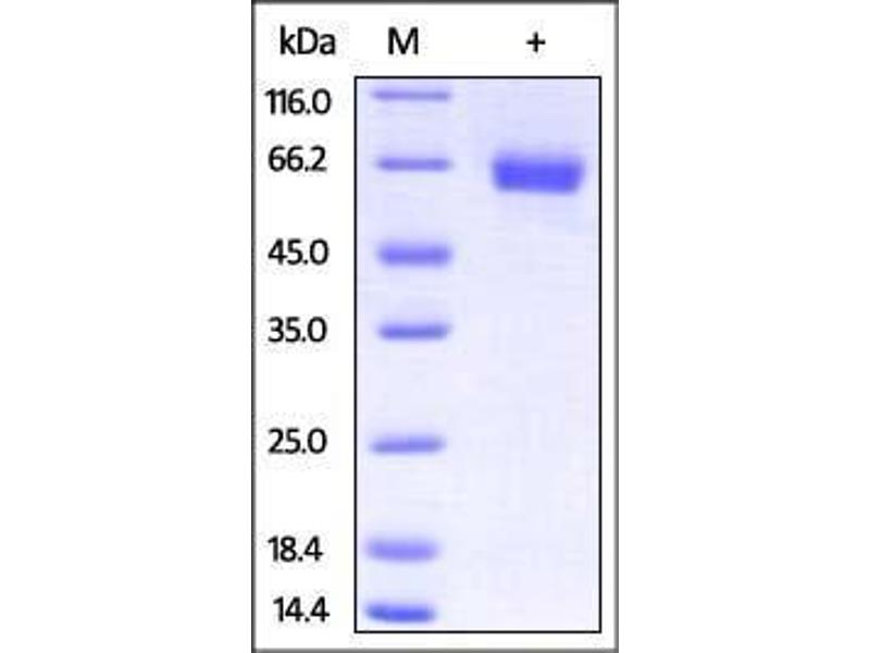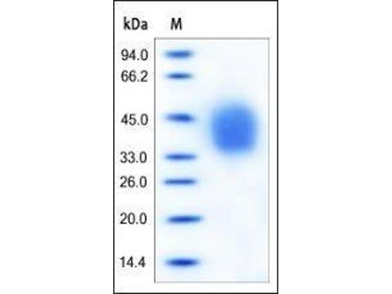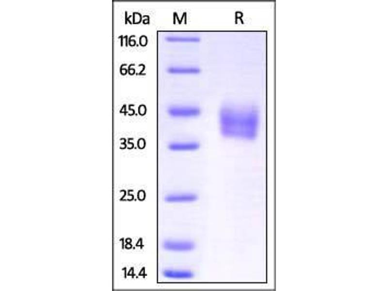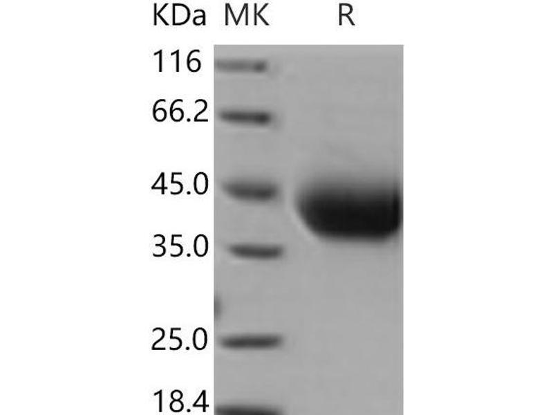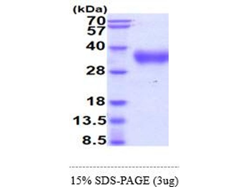 The purity of the protein is greater than 95 % as determined by SDS-PAGE and Coomassie blue staining.