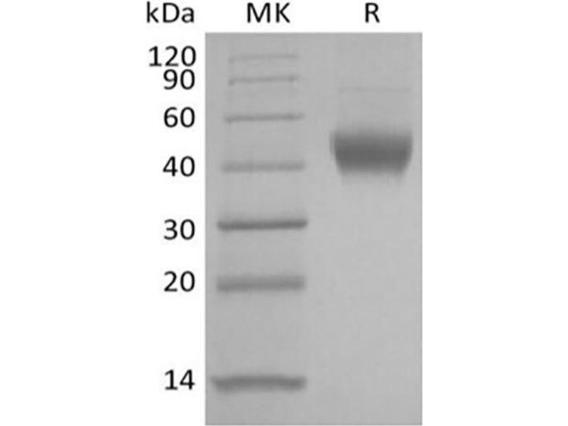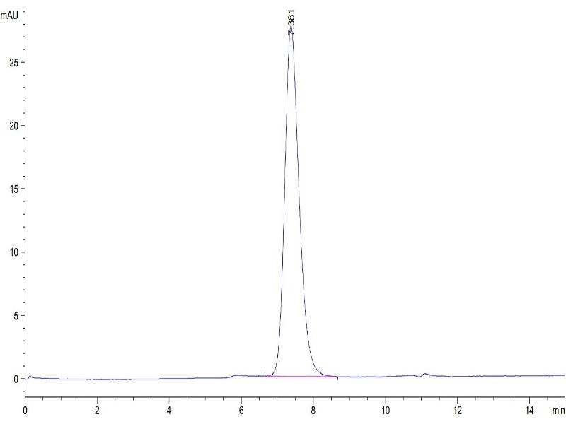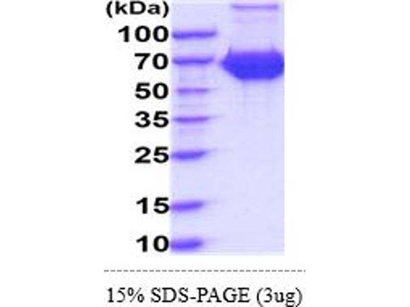 The purity of the protein is greater than 95 % as determined by SDS-PAGE and Coomassie blue staining.