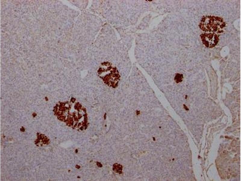 - Immunohistochemistry (IHC) and Immunofluorescence (IF): Insulin antibodies are used to visualize the distribution and localization of insulin in tissues. IHC and IF techniques allow researchers to identify insulin-producing cells within pancreatic islets and study changes in insulin expression in response to different physiological or pathological conditions.