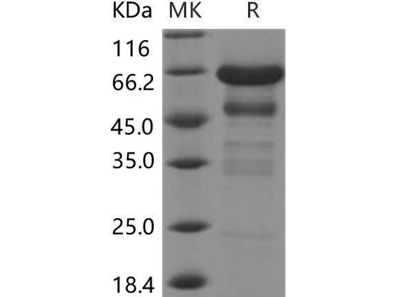 The purity of the protein is greater than 85 % as determined by SDS-PAGE and Coomassie blue staining.