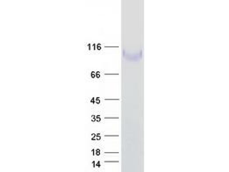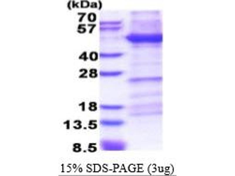 The purity of the protein is greater than 95 % as determined by SDS-PAGE and Coomassie blue staining.