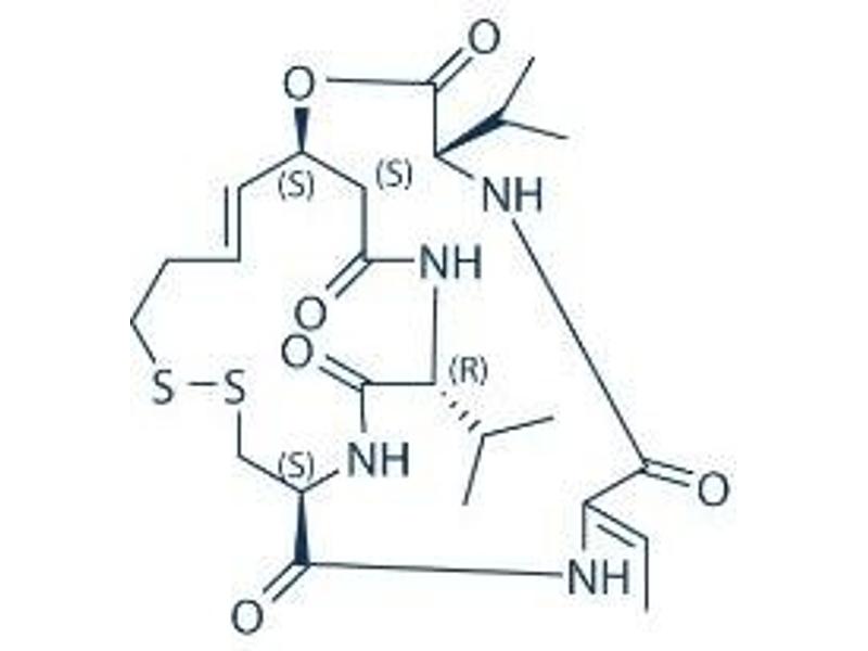 - A potent and selective inhibitor of class I histone deacetylases (HDACs), IC50 = 36, 47, 510 and 14,000 nM for HDAC1, 2, 4 and HDAC6, respectively. Induces apoptosis in a variety of cell lines and displays antitumor activity in mouse models. Recently approved for clinical use in T-cell lymphoma.