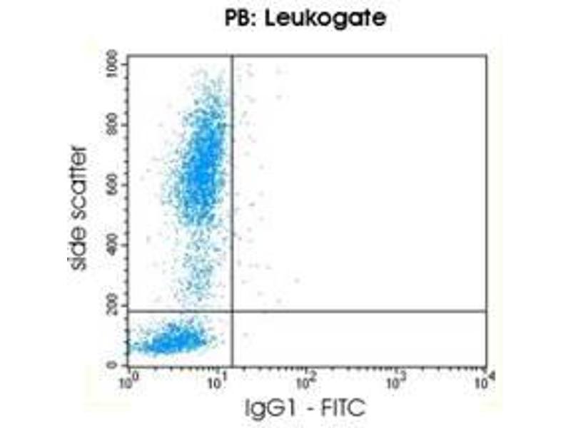 This ready to use Negative Control reagent contains purified, fluorescein or phycoerythrin conjugated mouse immunoglobulin molecules of IgG1 isotype, which have been selected on the basis of their binding characteristics: no specific binding to human cell surface or intracellular antigens, same low range of nonspecific binding to human leukocytes as other Reagents. This isotype control IgG1 is suitable as a Negative Control to be used in combination with reagents for the: - Enumeration of Myeloid Cells - Analysis of Myeloid Differentiation Stage - Enumeration of B-cells and Precursors - Enumeration of T-cells and Precursors - Analysis of Leukemia Cells - Analysis of Immunodeficiency StatesThe negative control reagent permits to estimate the degree of non-specific binding of isotype matched immunologbulins to leukocytes via e.g. Fc-receptors. It enables the expert to set flow cytometric parameters accordingly.Results must be put within the context of other diagnostic tests as well as the clinical history of the patient by a certified professional before final interpretation. nm