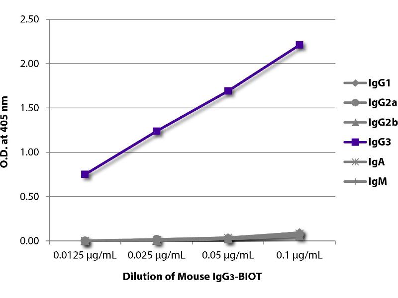 Working Dilutions: Flow Cytometry Purified (UNLB) antibody 1 g/106 cells BIOT conjugate 1 g/106 cells FITC, PE, APC, SPRD, CY5, PE/CY5.5, PE/CY7, and AF647 conjugates 10 L/106 cells For flow cytometry, the suggested use of these reagents is in a final volume of 100 L ELISA Purified (UNLB) antibody 1 - 5 g/mL AP conjugate 1:2,000 - 1:4,000 HRP conjugate 1:4,000 - 1:8,000