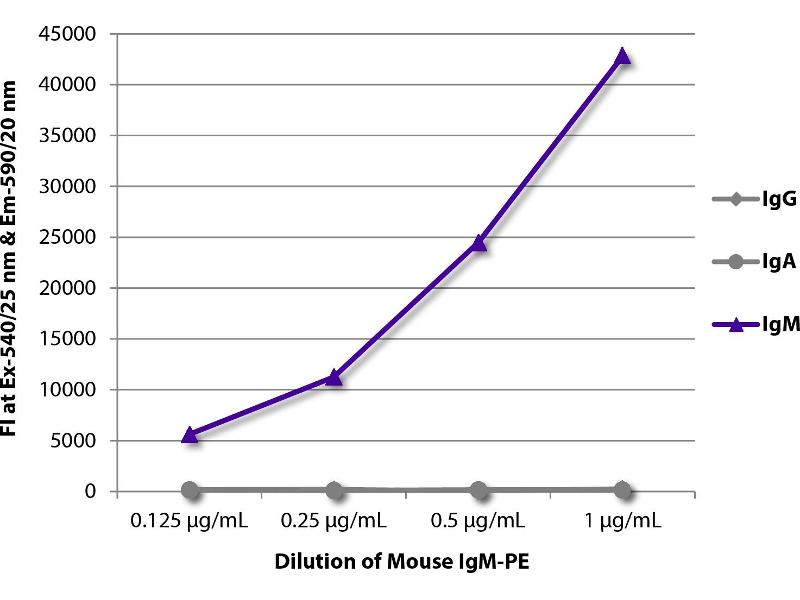 Working Dilutions: ELISA Purified (UNLB) antibody 1 g/mL BIOT conjugate 1:5,000 - 1:20,000 FLISA FITC, FLMA, and AF488 1:100 - 1:400 PE and APC 1 g/mL Flow Cytometry Purified (UNLB) antibody 1 g/106 cells BIOT conjugate 1 g/10 6 cells FITC, PE, APC, SPRD, PE/CY5.5, PE/CY7, FLMA, and AF488 10 L/10 6 cells conjugates For flow cytometry, the suggested use of these reagents is in a final volume of 100 L