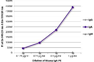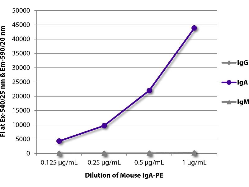 Working Dilutions: Flow Cytometry Purified (UNLB) antibody 1 g/106 cells BIOT conjugate 1 g/106 cells FITC, PE, APC, SPRD, PE/CY5.5, PE/CY7, APC/CY5.5, and 10 L/106 cells APC/CY7 conjugates For flow cytometry, the suggested use of these reagents is in a final volume of 100 L ELISA Purified (UNLB) antibody 1 - 5 g/mL
