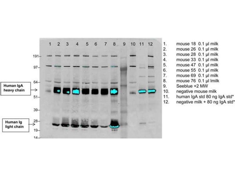 Application Note: Human IgA whole molecule has been tested in SDS-Page and Western blot and can be utilized as a control or standard reagent in SDS, Western Blotting and ELISA experiments.