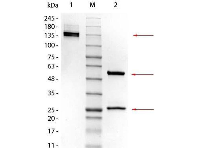 - Assay by immunoelectrophoresis resulted in a single precipitin arc against anti-Mouse IgG2a and anti-Mouse serum. Isotyping assay resulted non-reactive with antisera to mouse IgG1, IgG2b, IgG3, IgA, IgM. Light chain composition has been confirmed by SDS-PAGE.