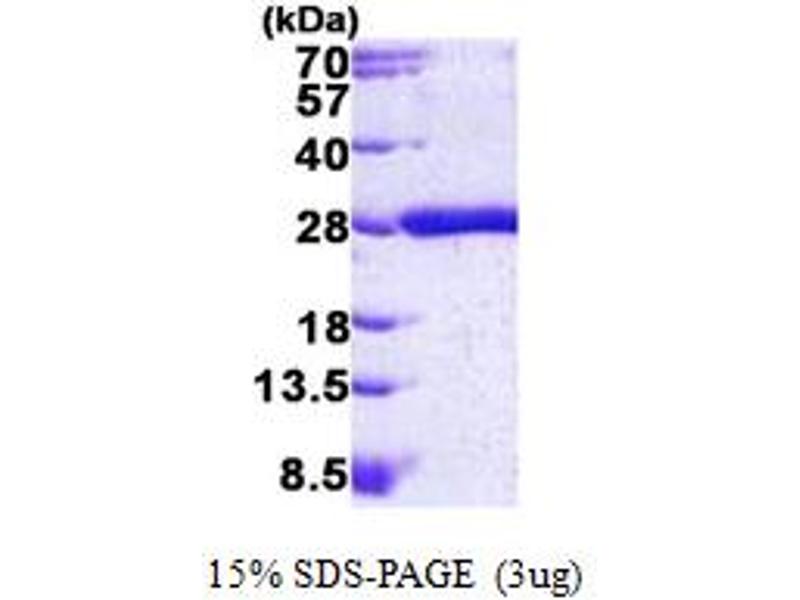 The purity of the protein is greater than 95 % as determined by SDS-PAGE and Coomassie blue staining.