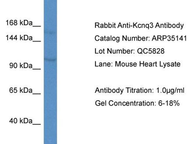 KCNQ3 Reaktivität: Human, Maus, Ratte, Rind (Kuh), Hund, Meerschweinchen, Pferd, Kaninchen, Affe, Schwein WB Wirt: Kaninchen Polyclonal unconjugated