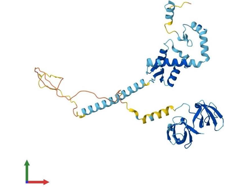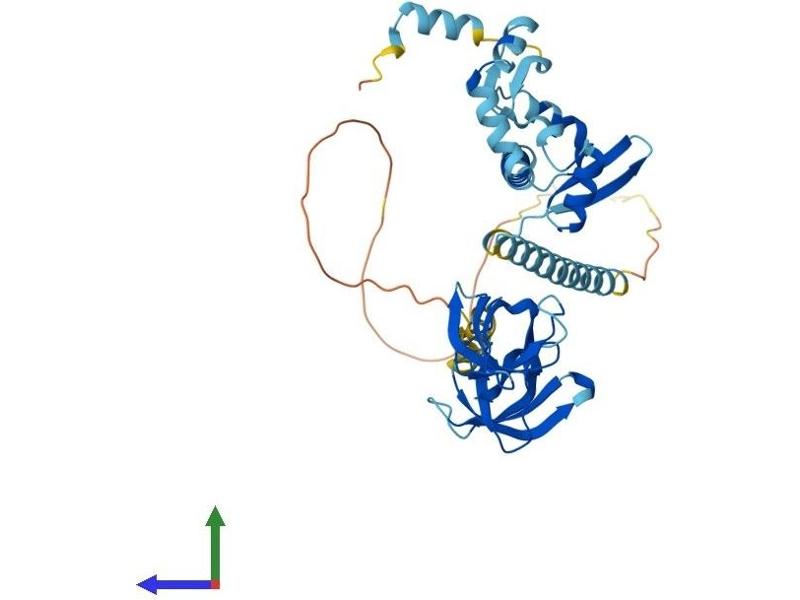 The protein encoded by this gene is a nuclear protein that forms intranuclear foci during proliferation and is redistributed in the nucleoplasm during the cell cycle. Short-wave ultraviolet light provokes the relocalization of the protein, suggesting its participation in the cellular response to DNA damage. Originally selected based on protein-binding with RecA antibodies, the mouse protein presents a limited similarity with a functional domain of the bacterial RecA protein, a characteristic shared by this human ortholog. Alternative splicing of this gene results in multiple transcript variants. [provided by RefSeq, Jan 2012].