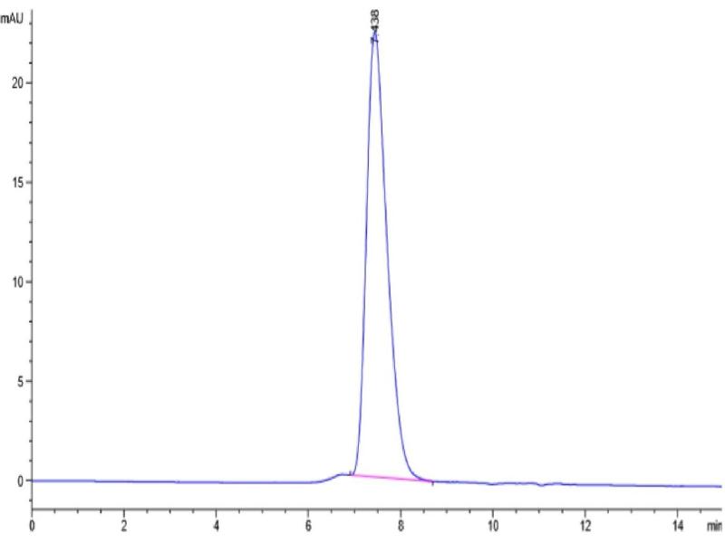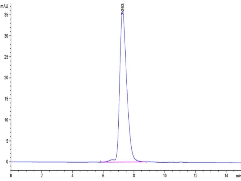 The purity of the protein is greater than 95 % as determined by SDS-PAGE and Coomassie blue staining.