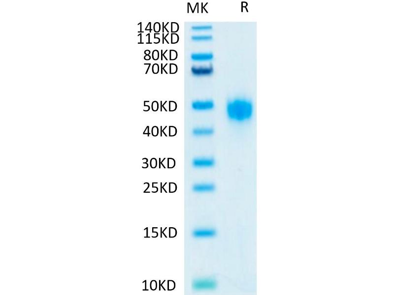 The purity of the protein is greater than 85 % as determined by SDS-PAGE and Coomassie blue staining.