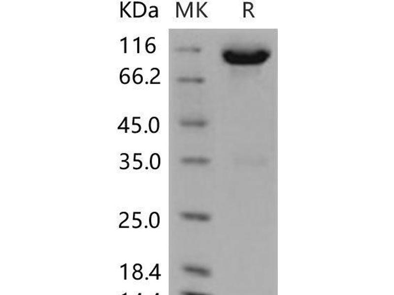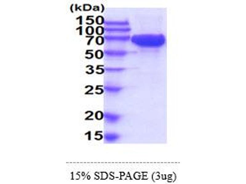 The purity of the protein is greater than 95 % as determined by SDS-PAGE and Coomassie blue staining.