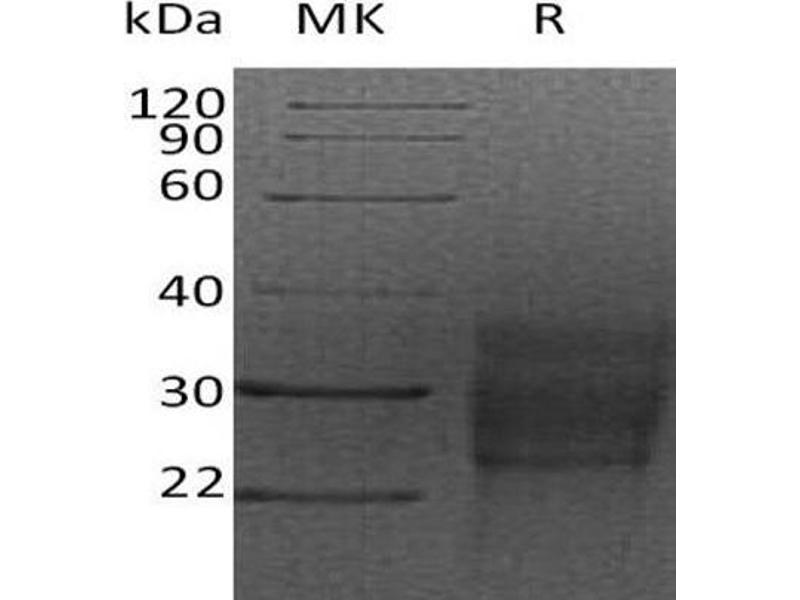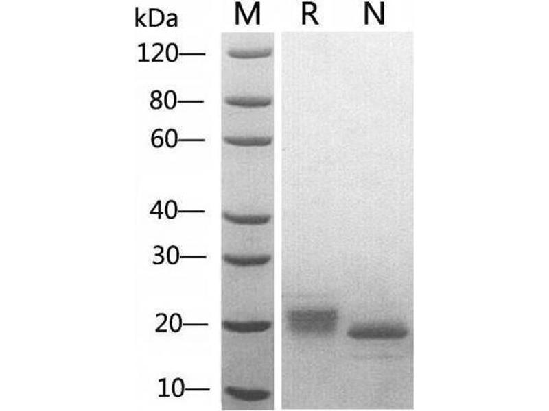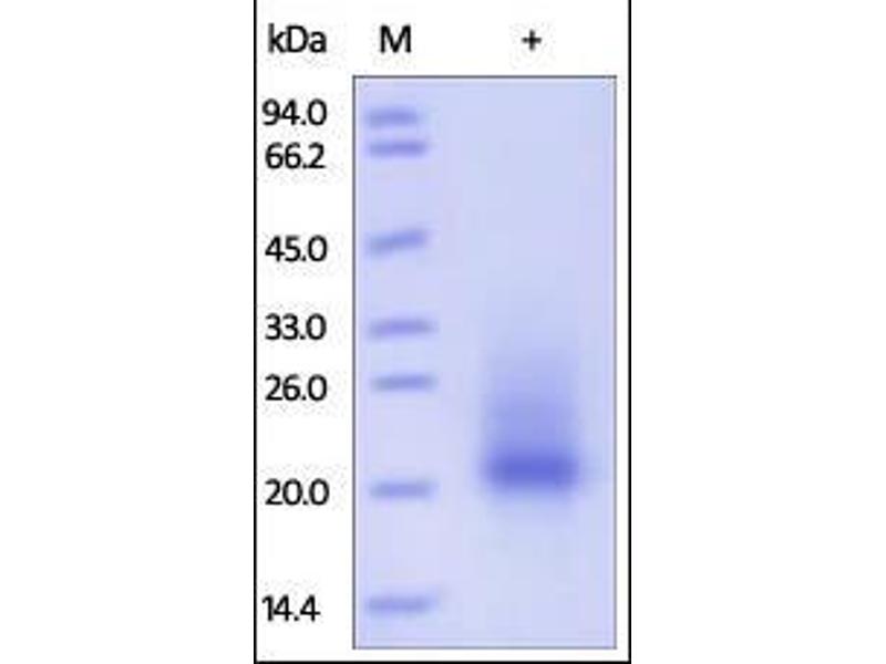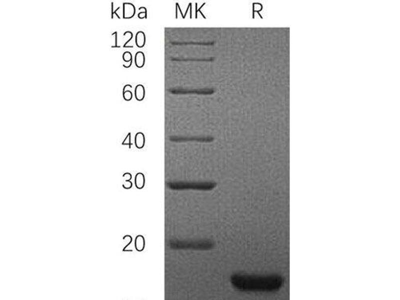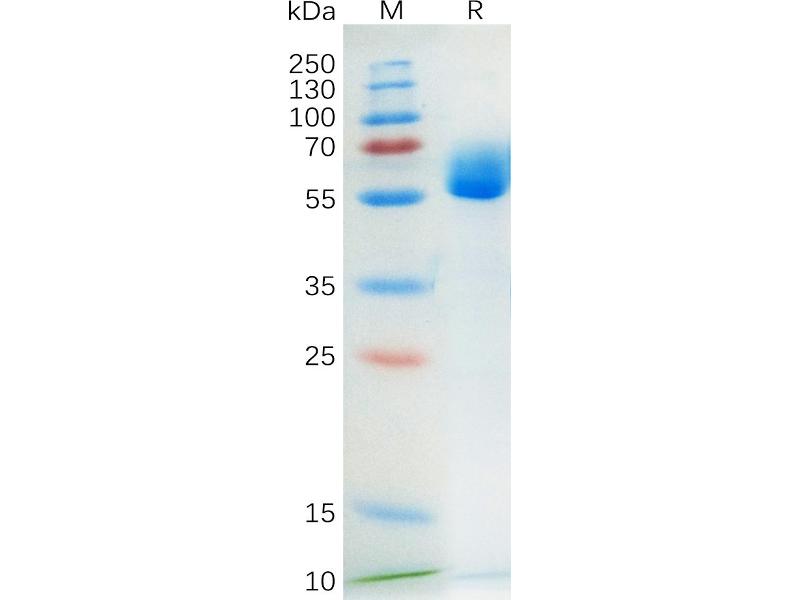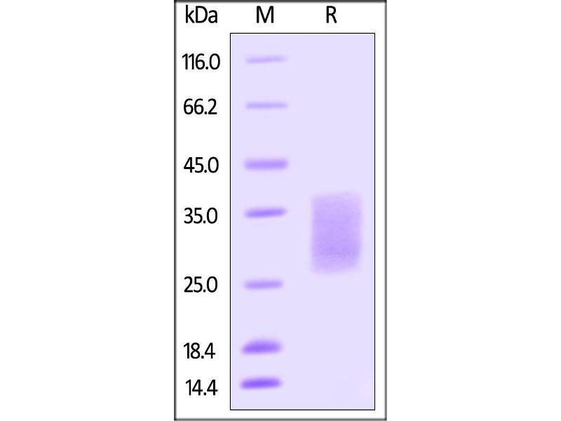The purity of the protein is greater than 95 % as determined by SDS-PAGE and Coomassie blue staining.