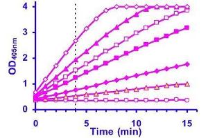 4. Read OD405nm (t = 0), and again after 4 min (t = 4 min) on a plate reader.