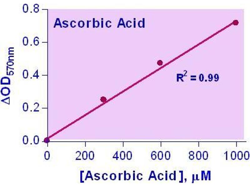 Quantitative determination of ascorbic acid by colorimetric (570nm) or fluorimetric (530nm/590nm) methods.
