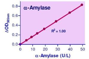 Sensitive and accurate. Linear detection range 0.3 to 50 U/L - amylase in 96-well plate assay.