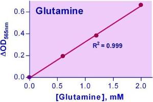 Sensitive and accurate. Use 20 µL sample. Linear detection range 0.023 - 2 mM glutamine in 96-well plate assay.