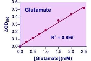 Glutamate is an important chemical in general metabolism. It is also a crucial mammalian neurotransmitter that is believed to be involved in a number of neurological and psychiatric disorders such as lateral sclerosis, lathyrism, autism and Alzheimer's disease. Glutamate is also widely used as a flavor enhancer in the food industry. Simple, direct and automation-ready procedures for measuring glutamate concentration are very desirable. This glutamate assay kit is based on glutamate dehydrogenase catalyzed oxidation of glutamate, in which the formed NADH reduces a formazan (MTT) Reagent. The intensity of the product color, measured at 565 nm, is proportionate to the glutamate concentration in the sample.